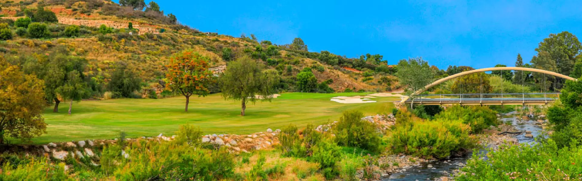 A dramatic course but easier for the average golfer, with generous fairways, flatter terrain and slightly larger greens than Campo America and Asia. Notable for one main bridge and four smaller bridges across the River Ojén, which features in eight holes, cutting across three fairways. There are four tunnels for golf carts.
